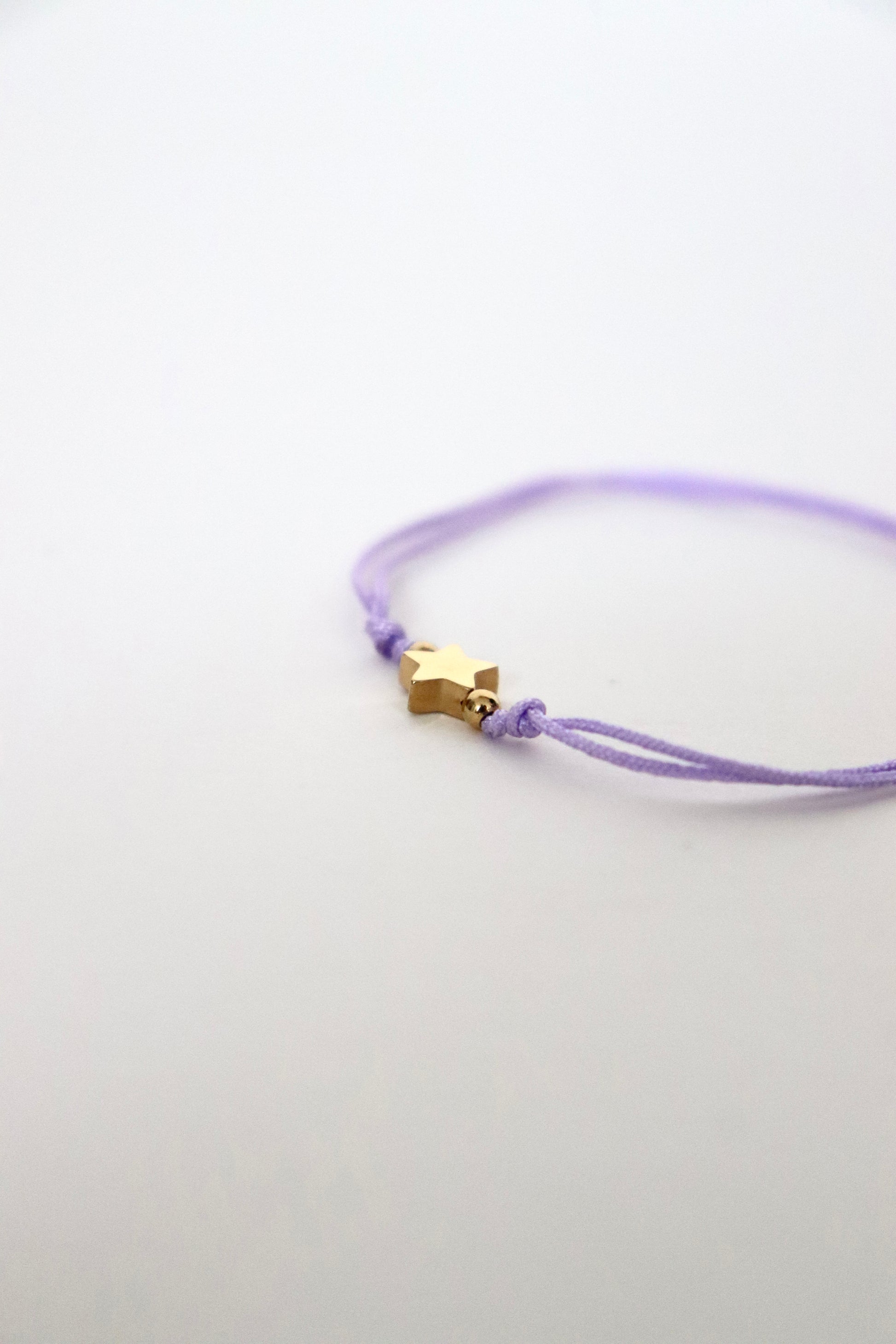 Fin et délicat, le bracelet Alma habille le poignet avec subtilité. Son cordon en fil de jade s’accompagne d’une petite étoile dorée, encadrée de deux perles, pour une touche lumineuse et poétique.