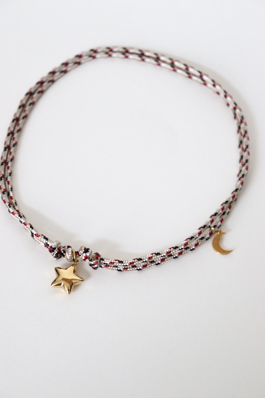Un cordon coloré, un pendentif porte-bonheur.