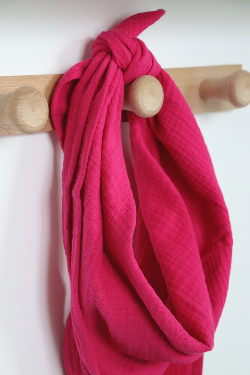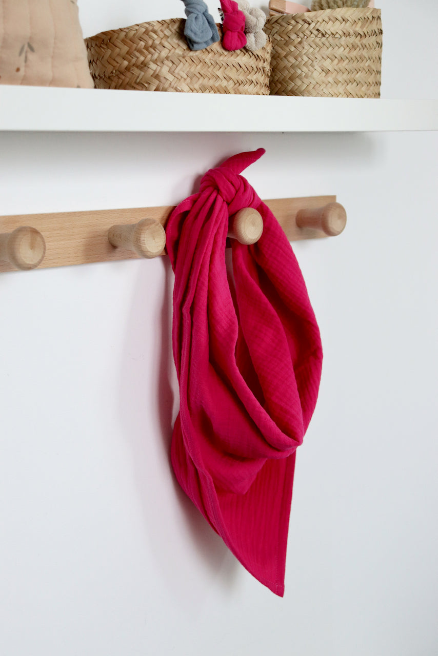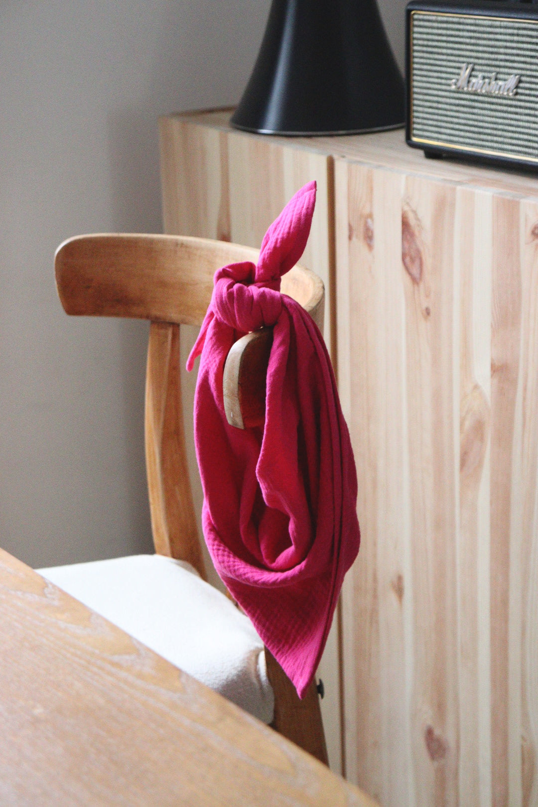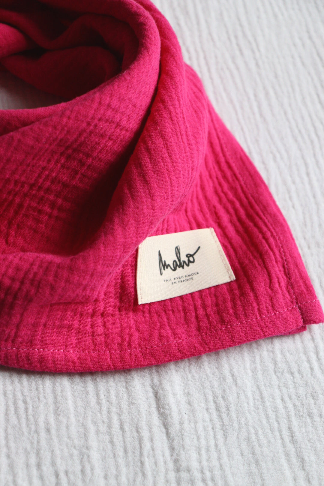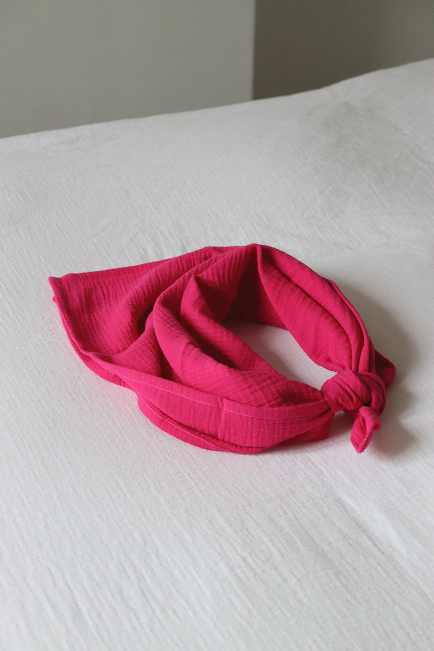 En bandana autour du cou, dans les cheveux, en lange pour bébé, en doudou.. Il est le petit foulard parfait qu'on emporte partout !
