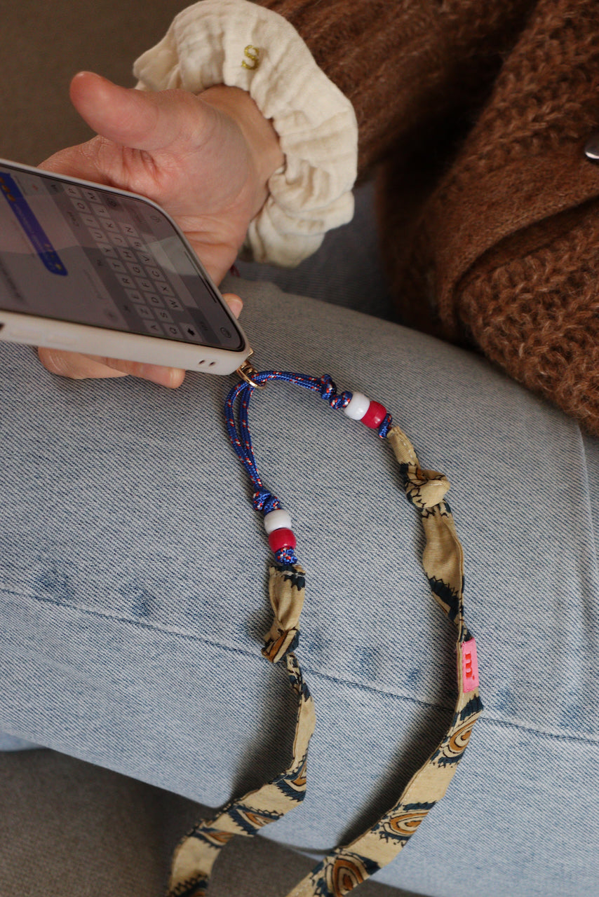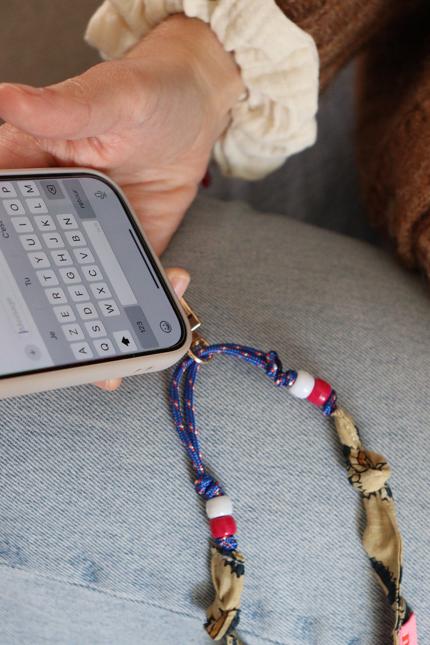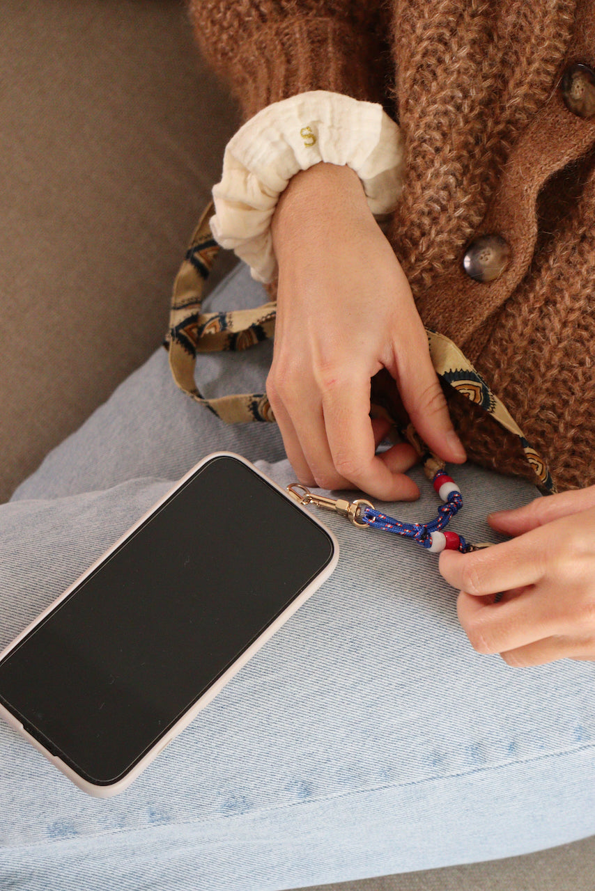 Pensé pour les beaux jours, les journées qui s’étirent, les virées improvisées et les balades sans sac, ce cordon de téléphone est le parfait allié de l’été. Pratique, malin, mais toujours avec ce petit twist mode qui fait toute la différence : une couleur vibrante, un tissu imprimé, un détail qui accroche le regard.