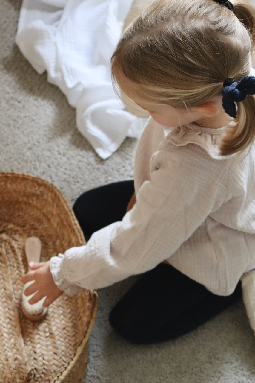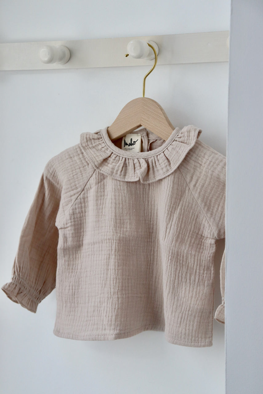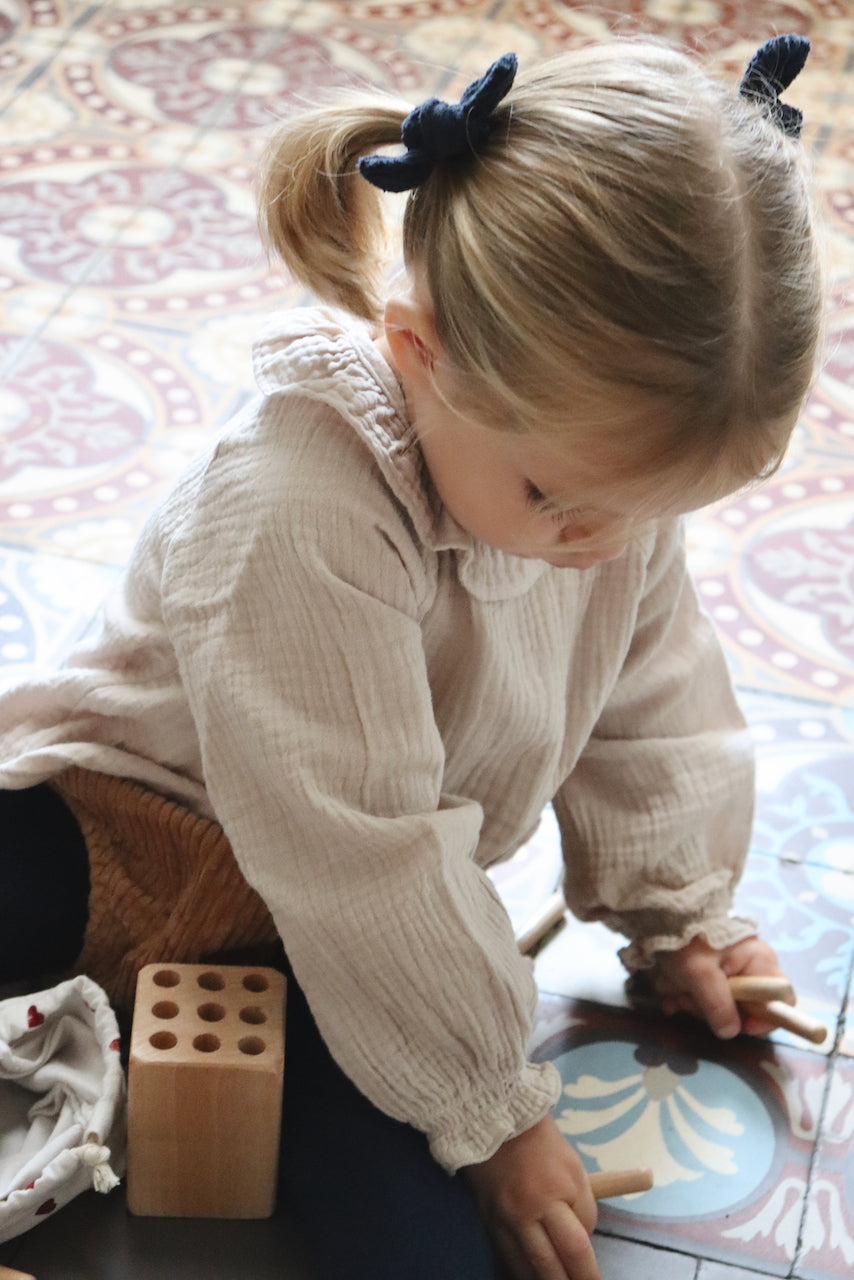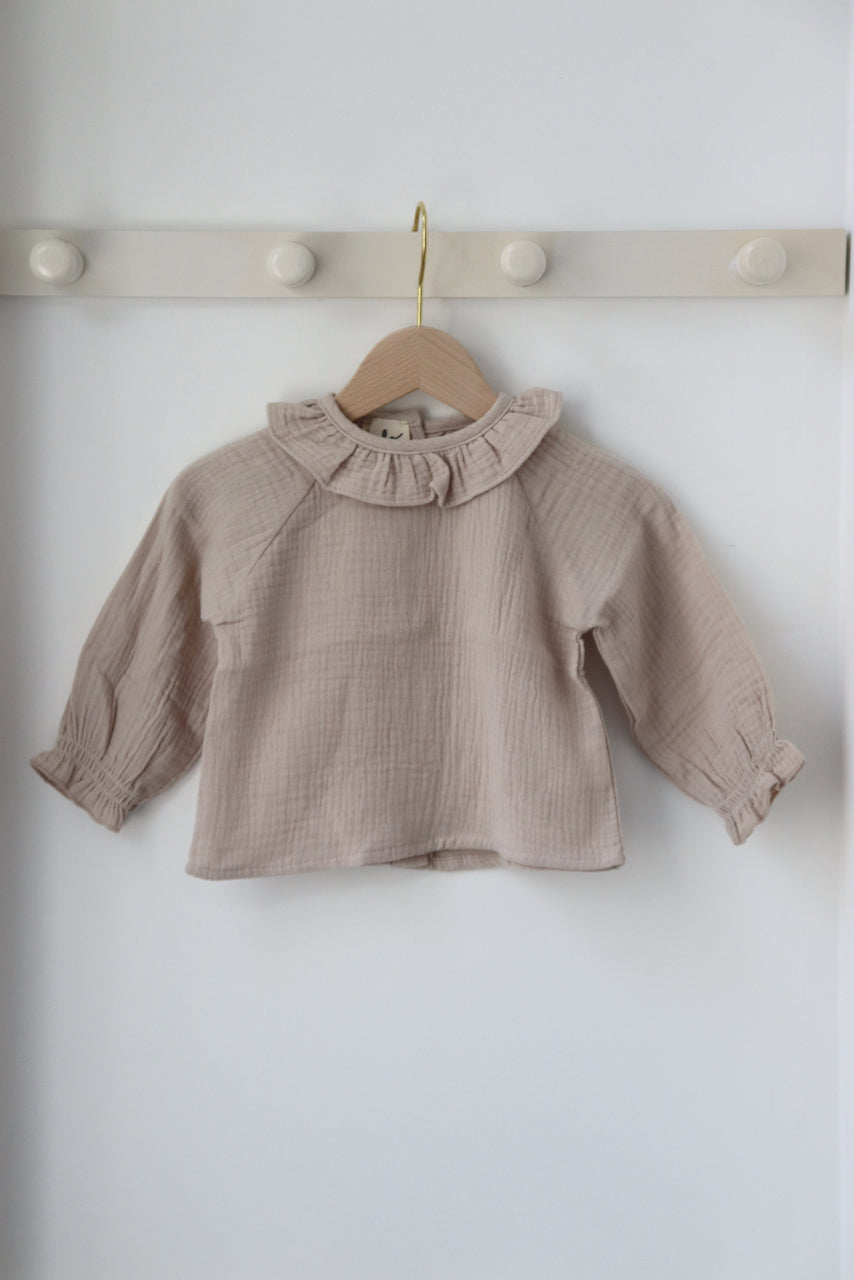 Charlie, c'est la blouse parfaite pour les petites filles. Celle qui s'accorde à presque toutes les tenues : en dessous d'une salopette, avec un jeans, un bloomer. Et même sous un pull, son joli petit col et ses manches froncées qui dépassent feront la différence.