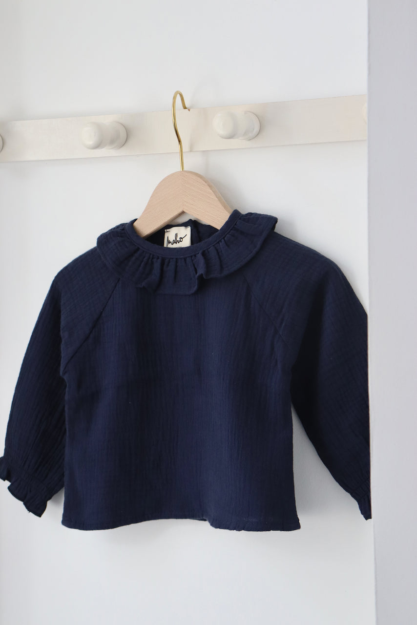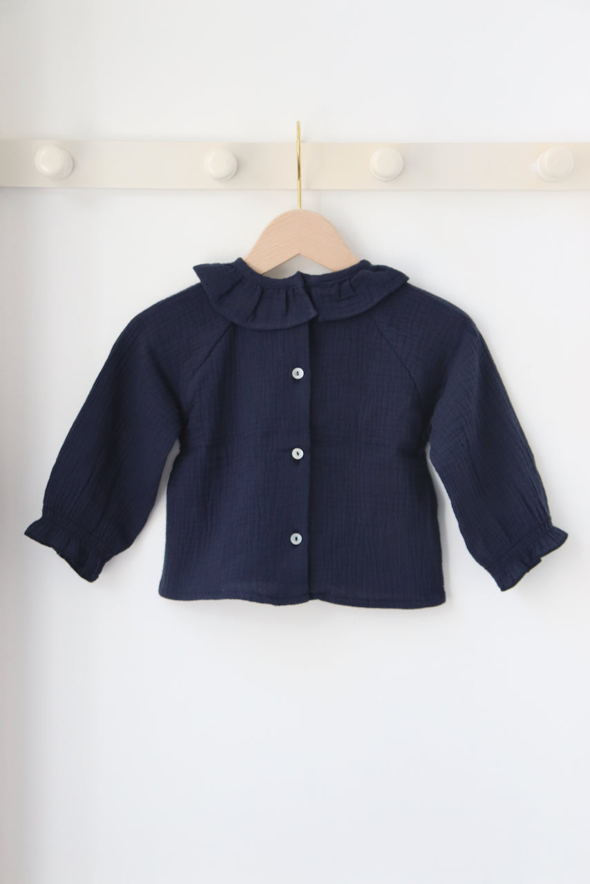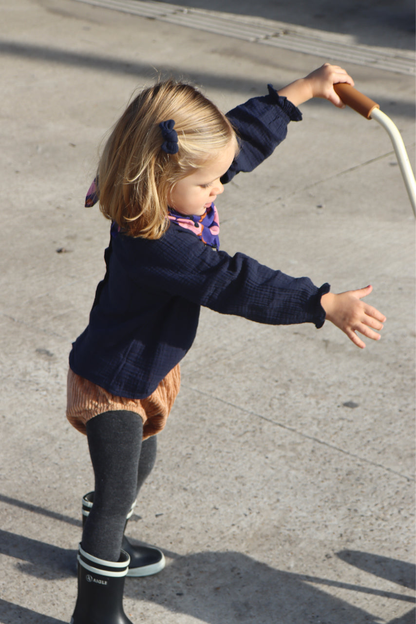 Charlie, c'est la blouse parfaite pour les petites filles. Celle qui s'accorde à presque toutes les tenues : en dessous d'une salopette, avec un jeans, un bloomer. Et même sous un pull, son joli petit col et ses manches froncées qui dépassent feront la différence.