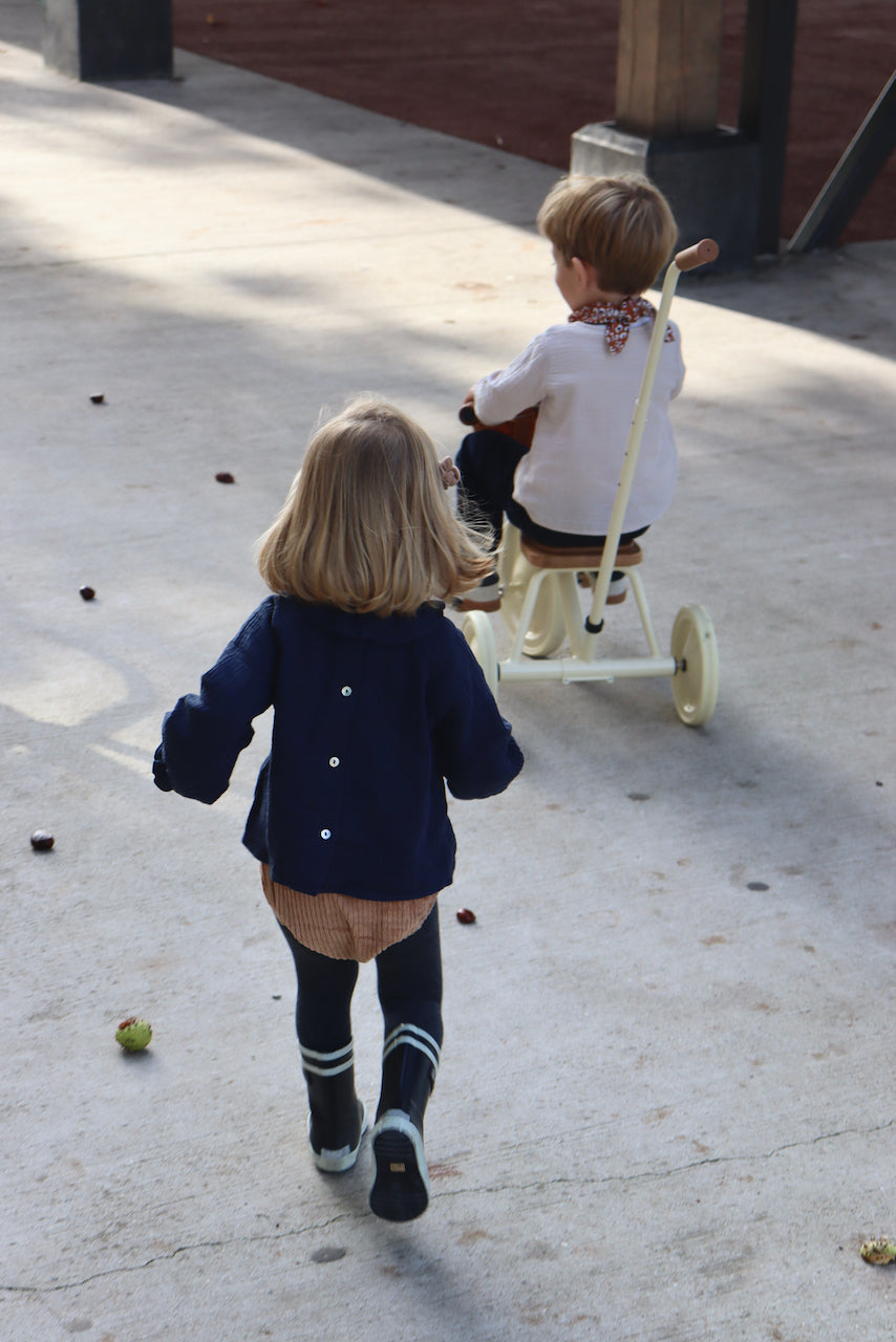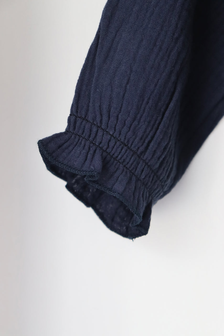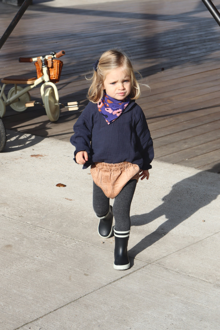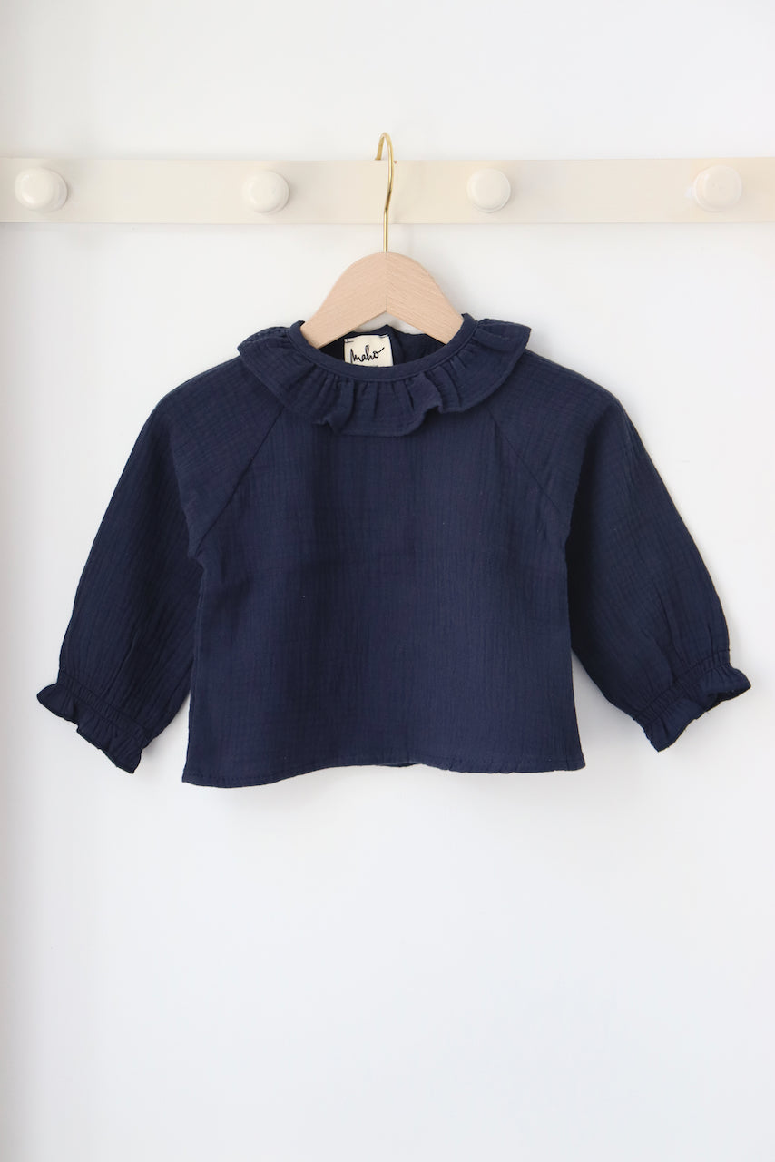 Charlie, c'est la blouse parfaite pour les petites filles. Celle qui s'accorde à presque toutes les tenues : en dessous d'une salopette, avec un jeans, un bloomer. Et même sous un pull, son joli petit col et ses manches froncées qui dépassent feront la différence.
