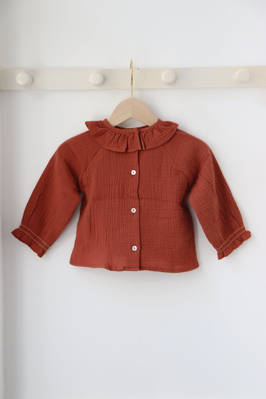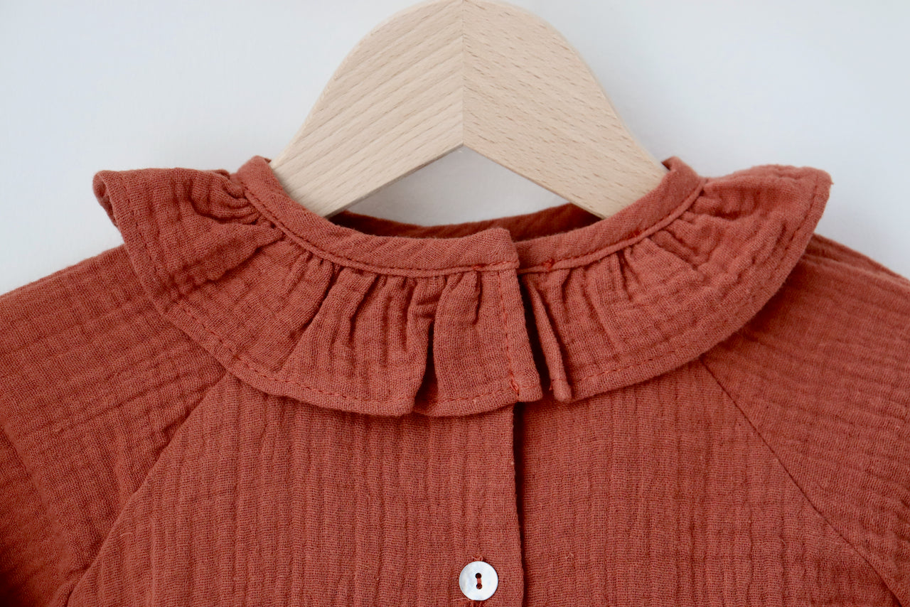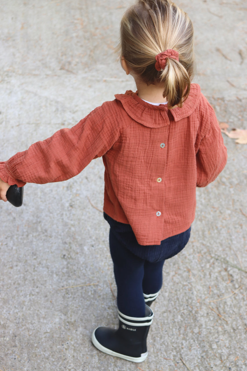 Charlie, c'est la blouse parfaite pour les petites filles. Celle qui s'accorde à presque toutes les tenues : en dessous d'une salopette, avec un jeans, un bloomer. Et même sous un pull, son joli petit col et ses manches froncées qui dépassent feront la différence.