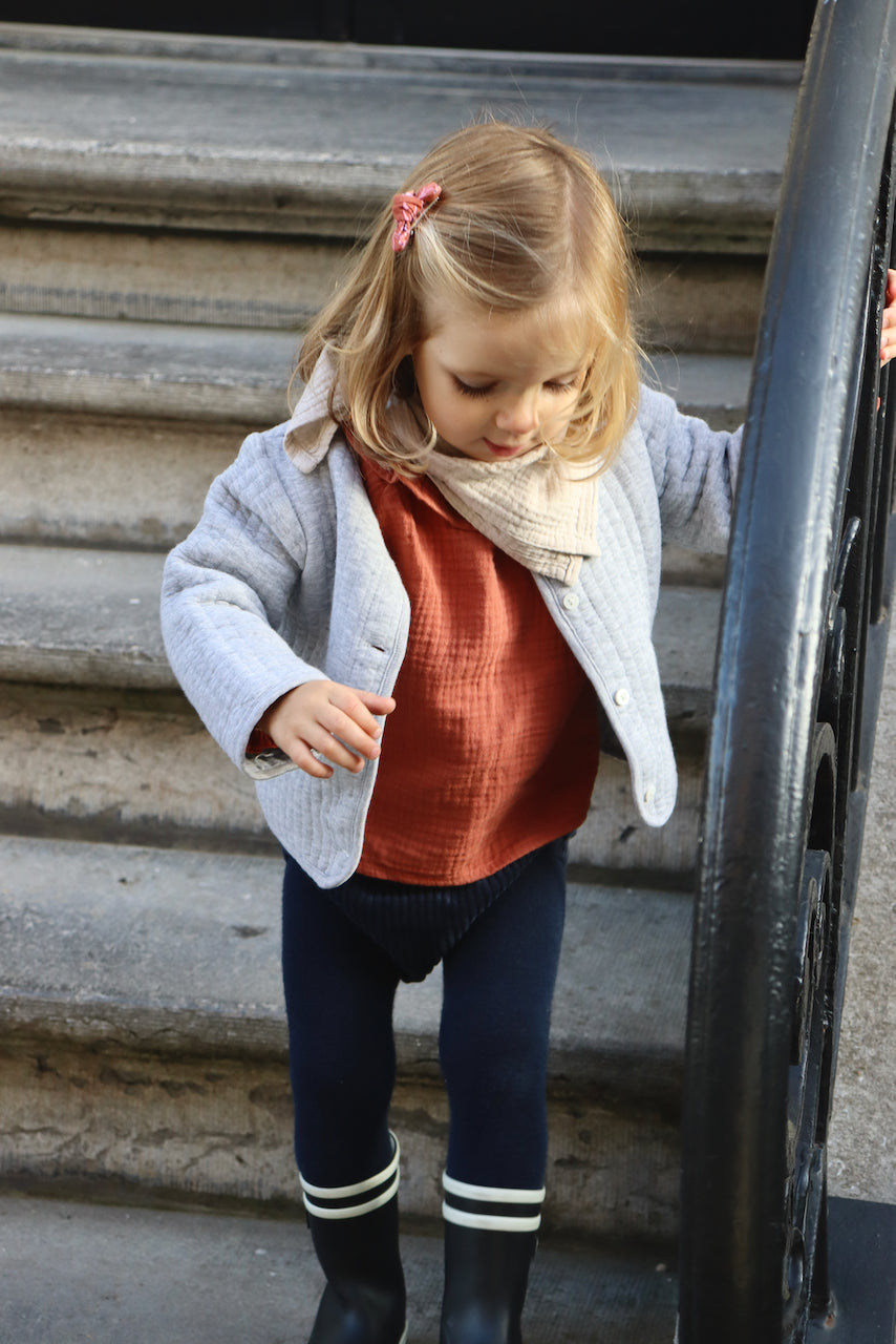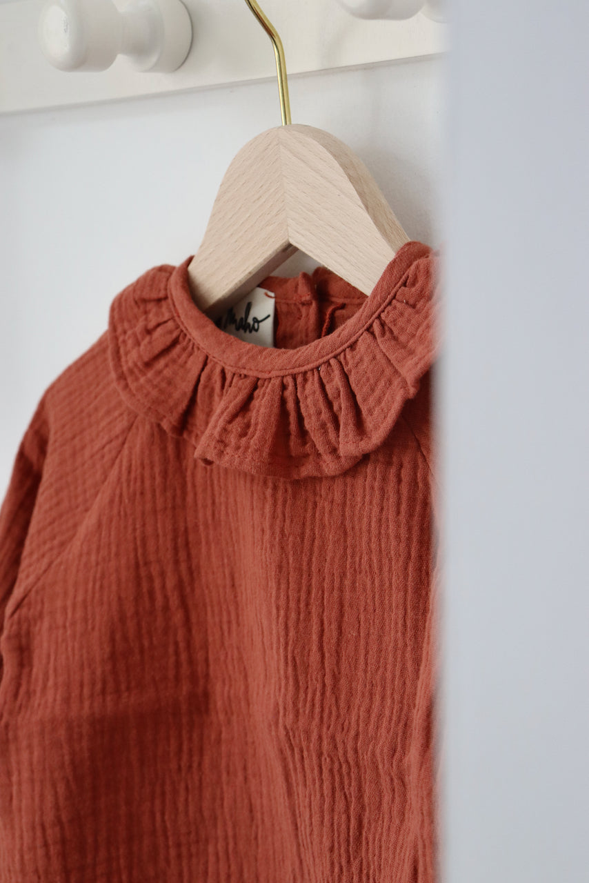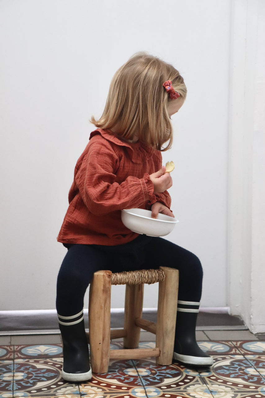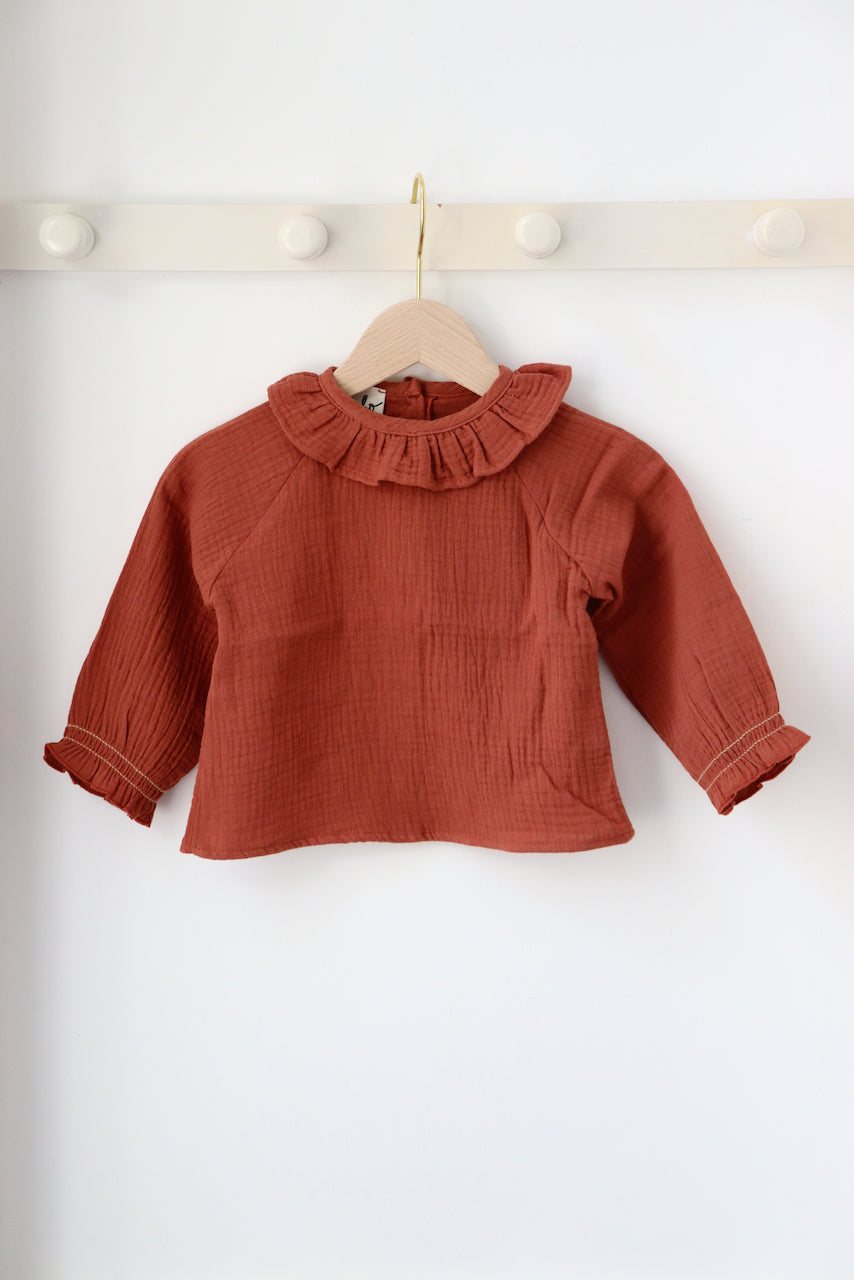 Charlie, c'est la blouse parfaite pour les petites filles. Celle qui s'accorde à presque toutes les tenues : en dessous d'une salopette, avec un jeans, un bloomer. Et même sous un pull, son joli petit col et ses manches froncées qui dépassent feront la différence.