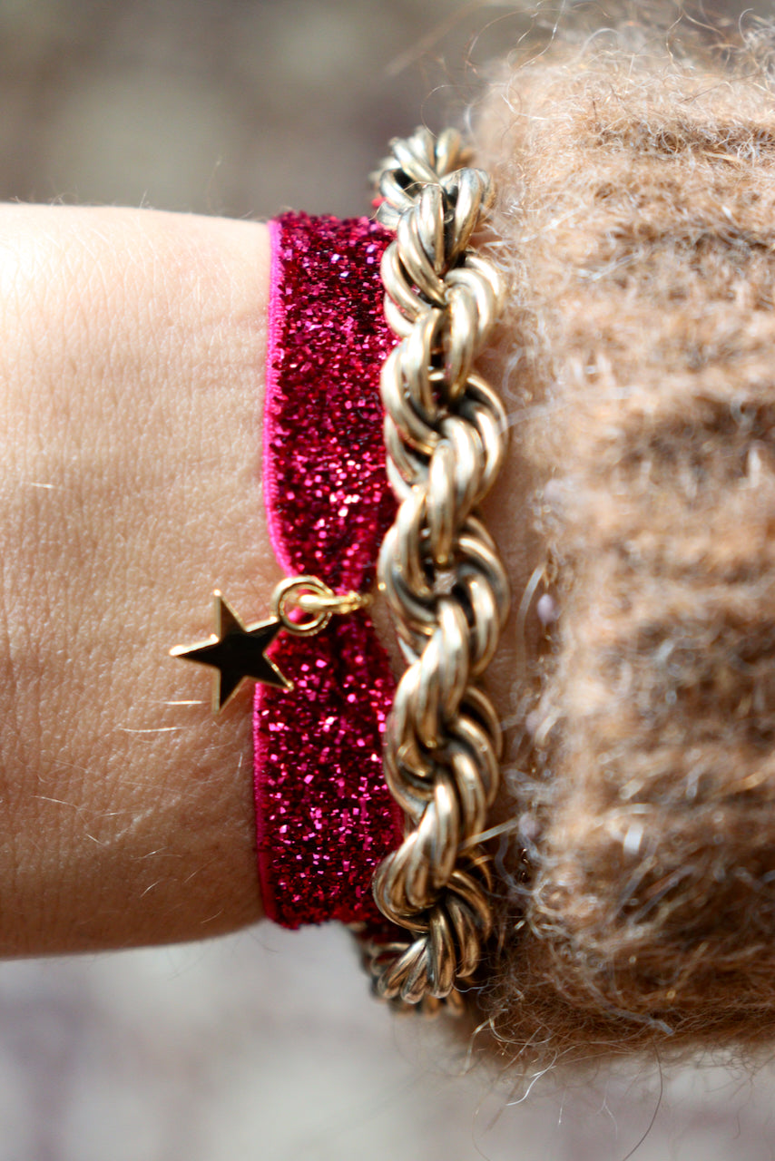 Son lien pailleté et sa breloque étoile dorée à l’or fin apportent une touche festive, délicate et facile à porter au quotidien.