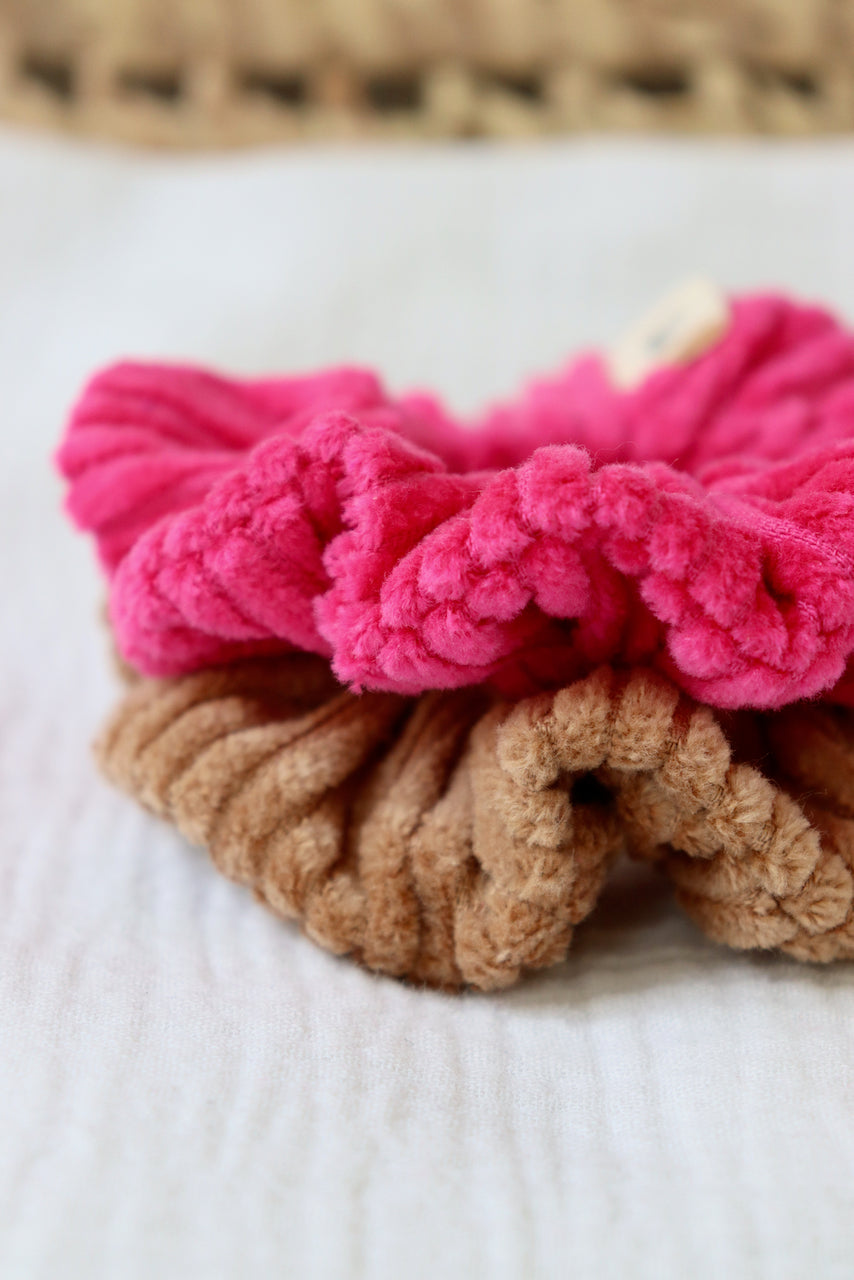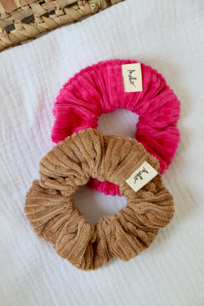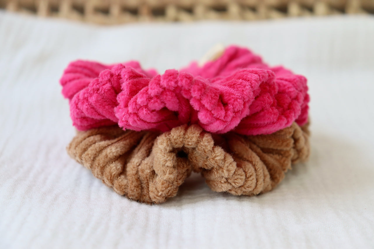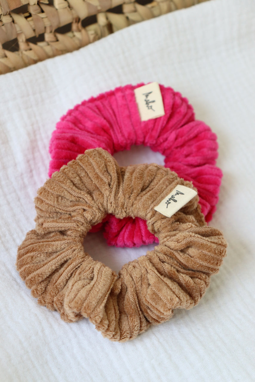 Lot de 2 chouchous: coloris Camel et Fuchsia.