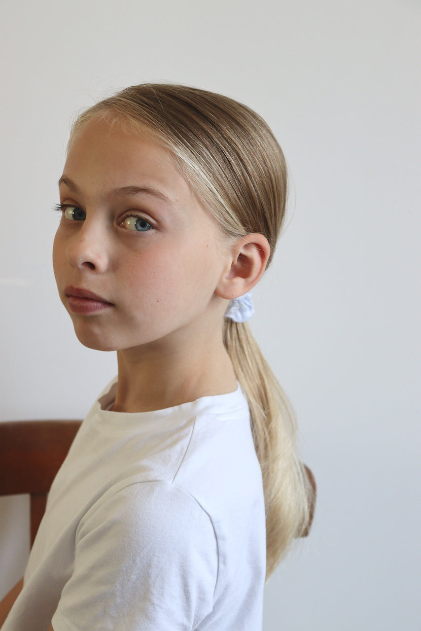 Adoptez le chouchou Gaby ! Notre mini srunchie pour attacher délicatement les cheveux des petites chevelures, tout en alliant confort et style.