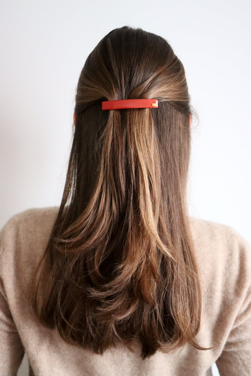 Notre gamme d'accessoires cheveux en acétate de cellulose est fabriquée de manière artisanale dans un atelier français situé au pied du Jura. (01)