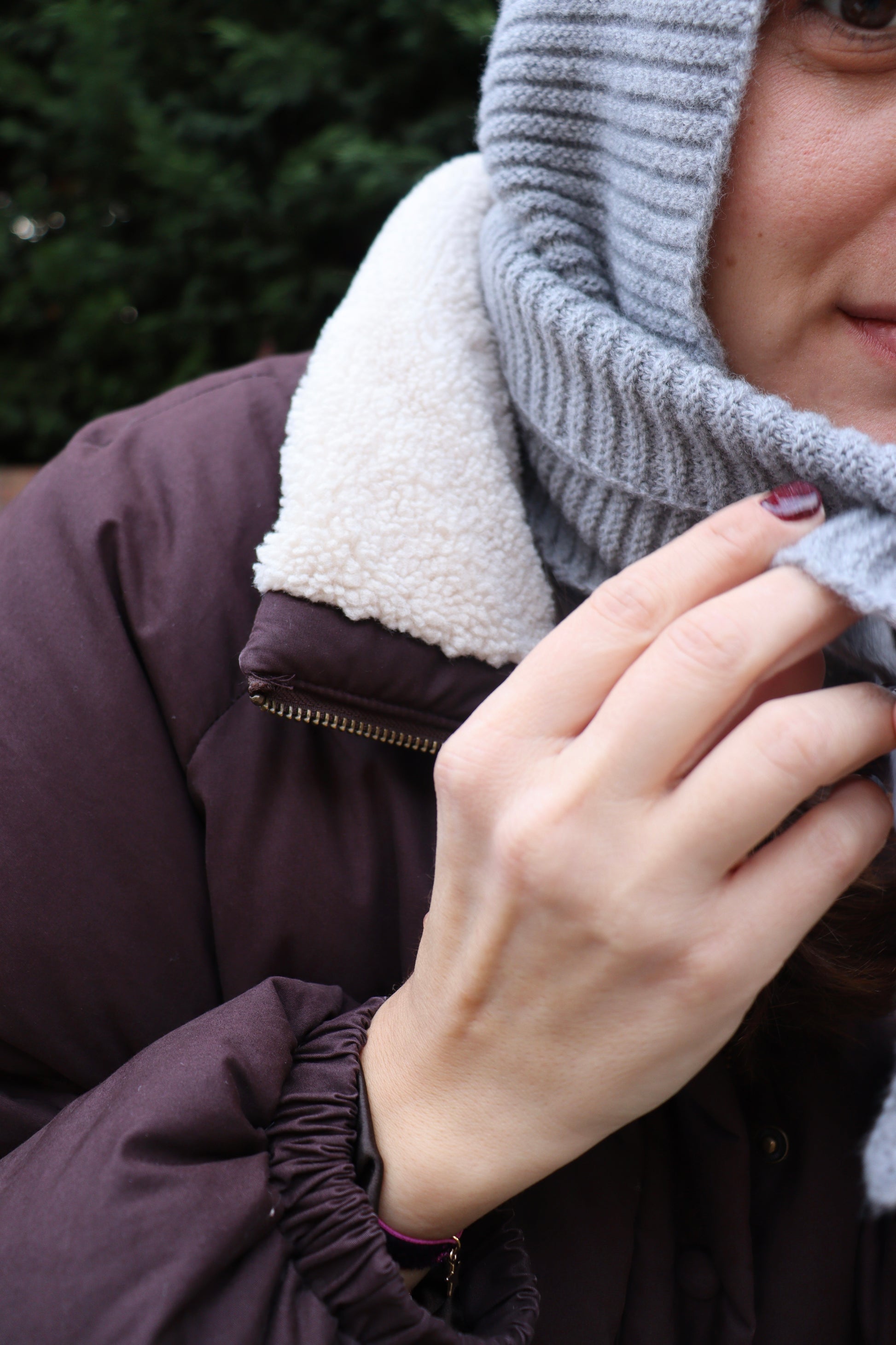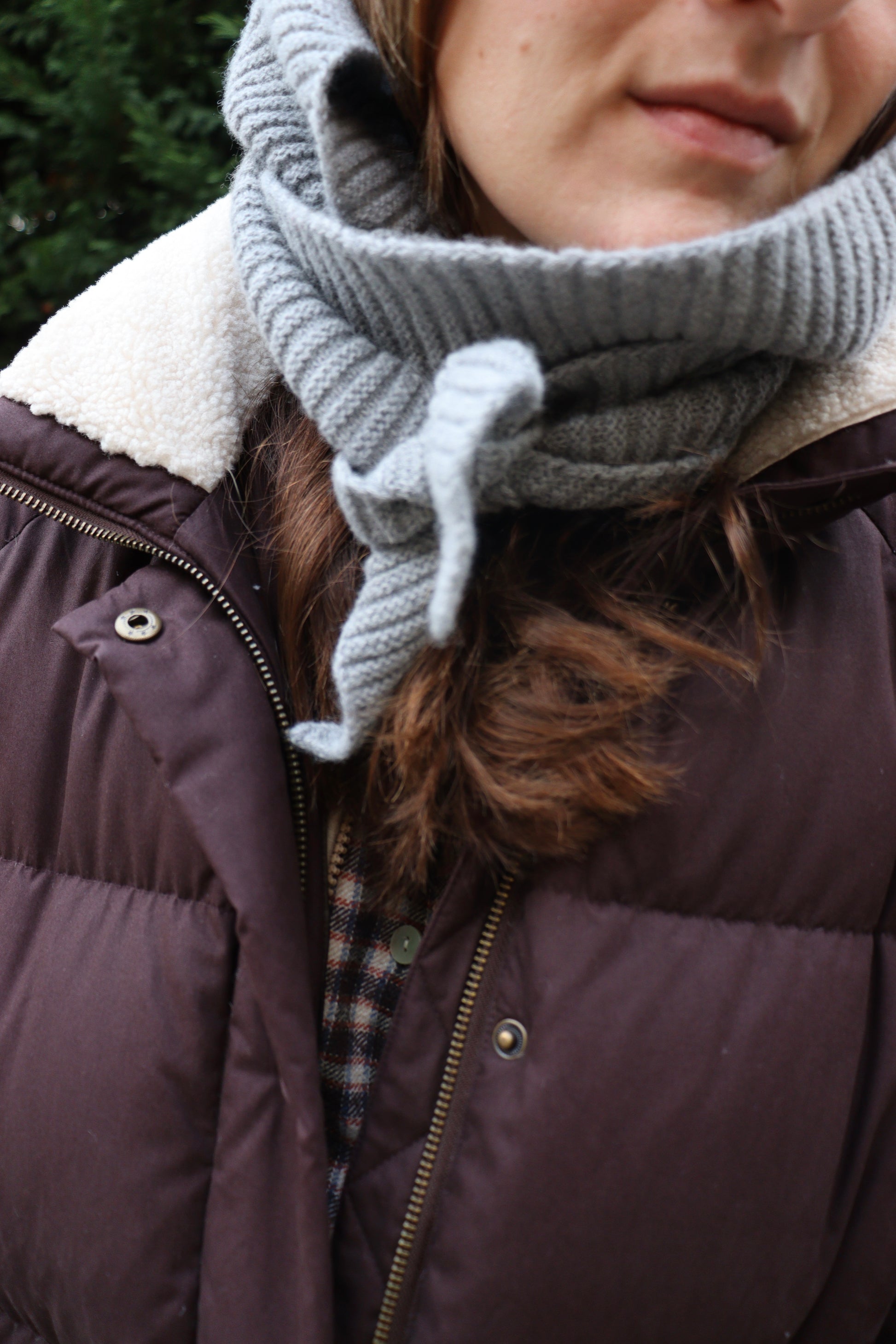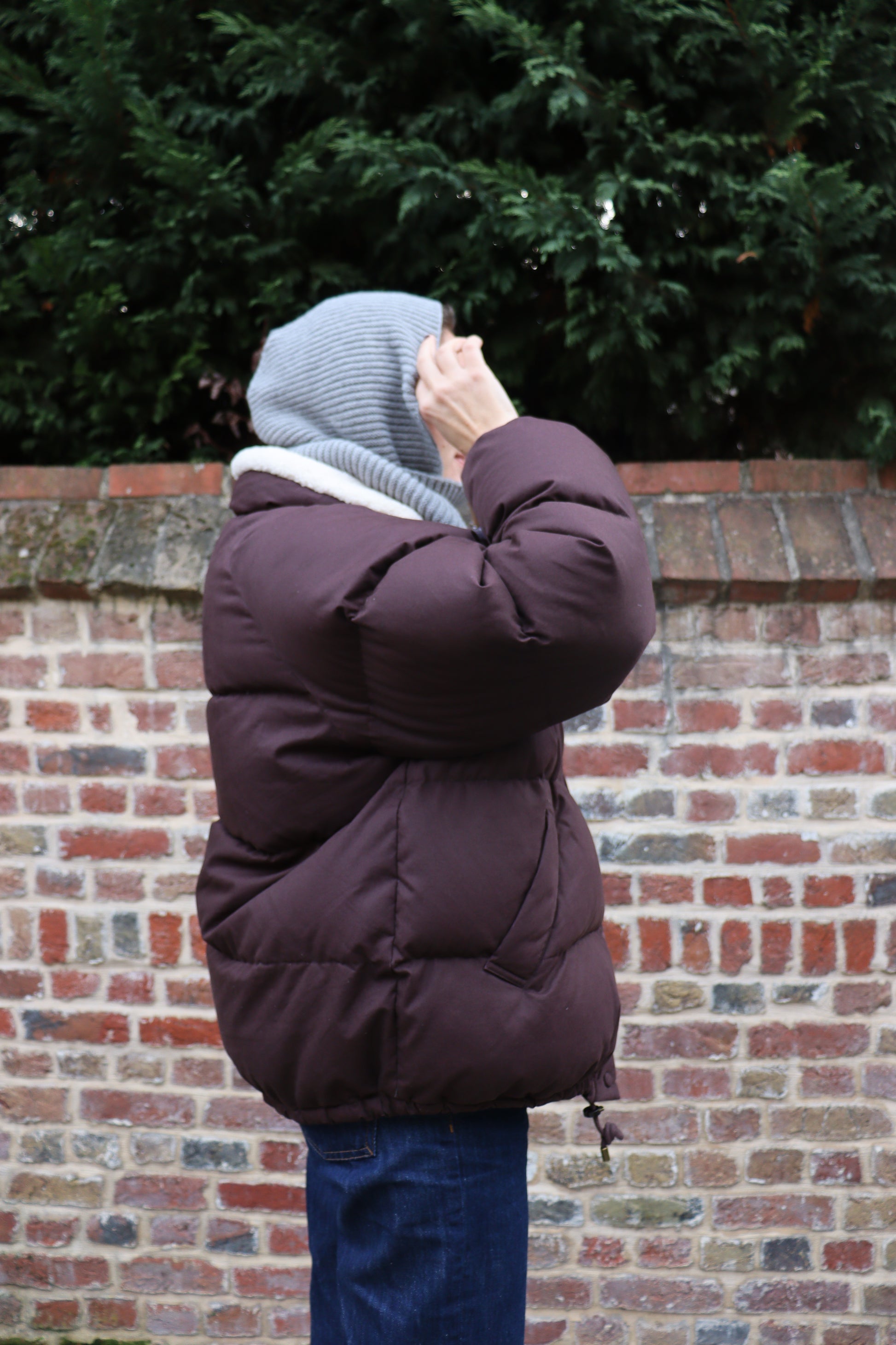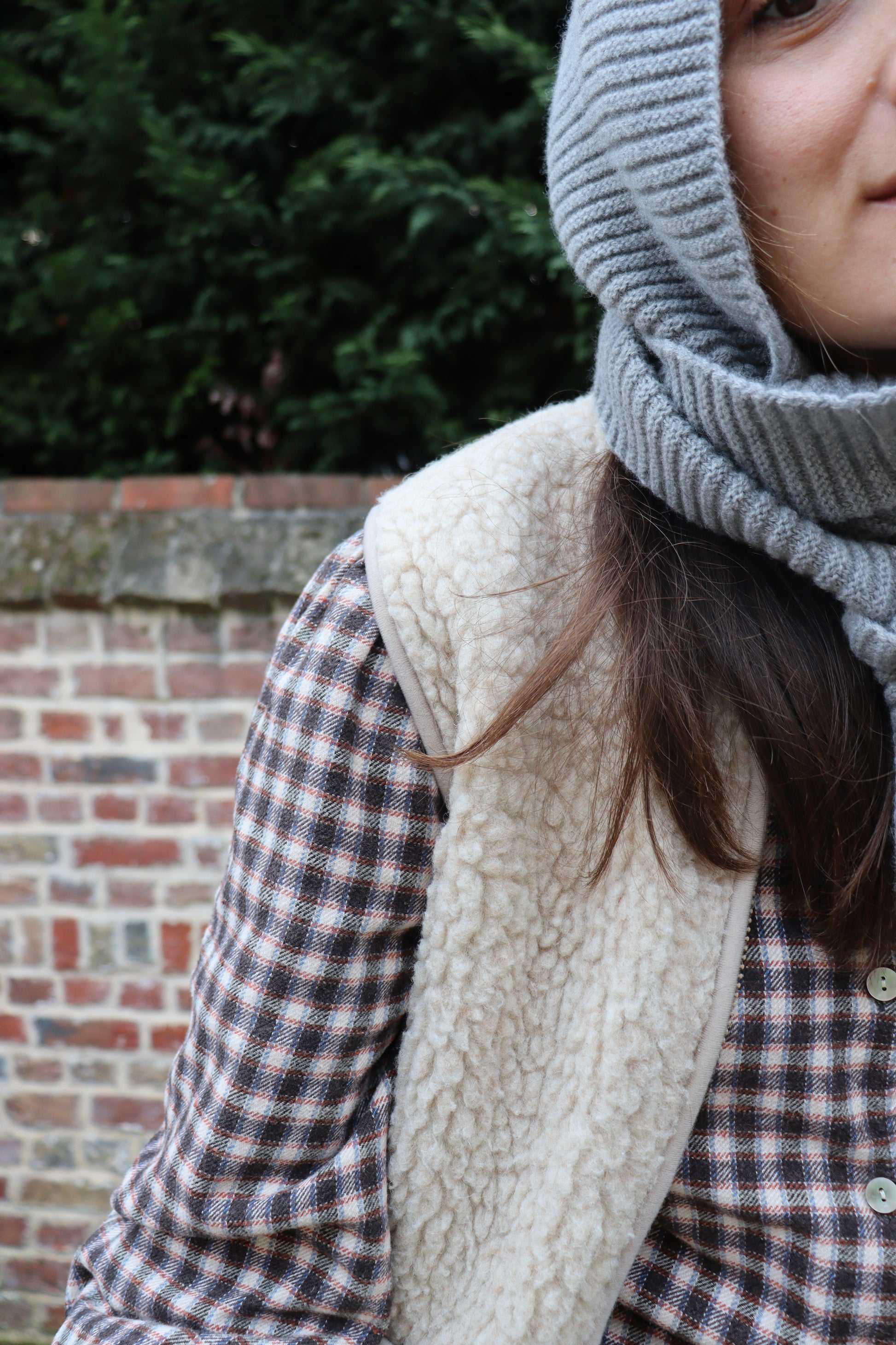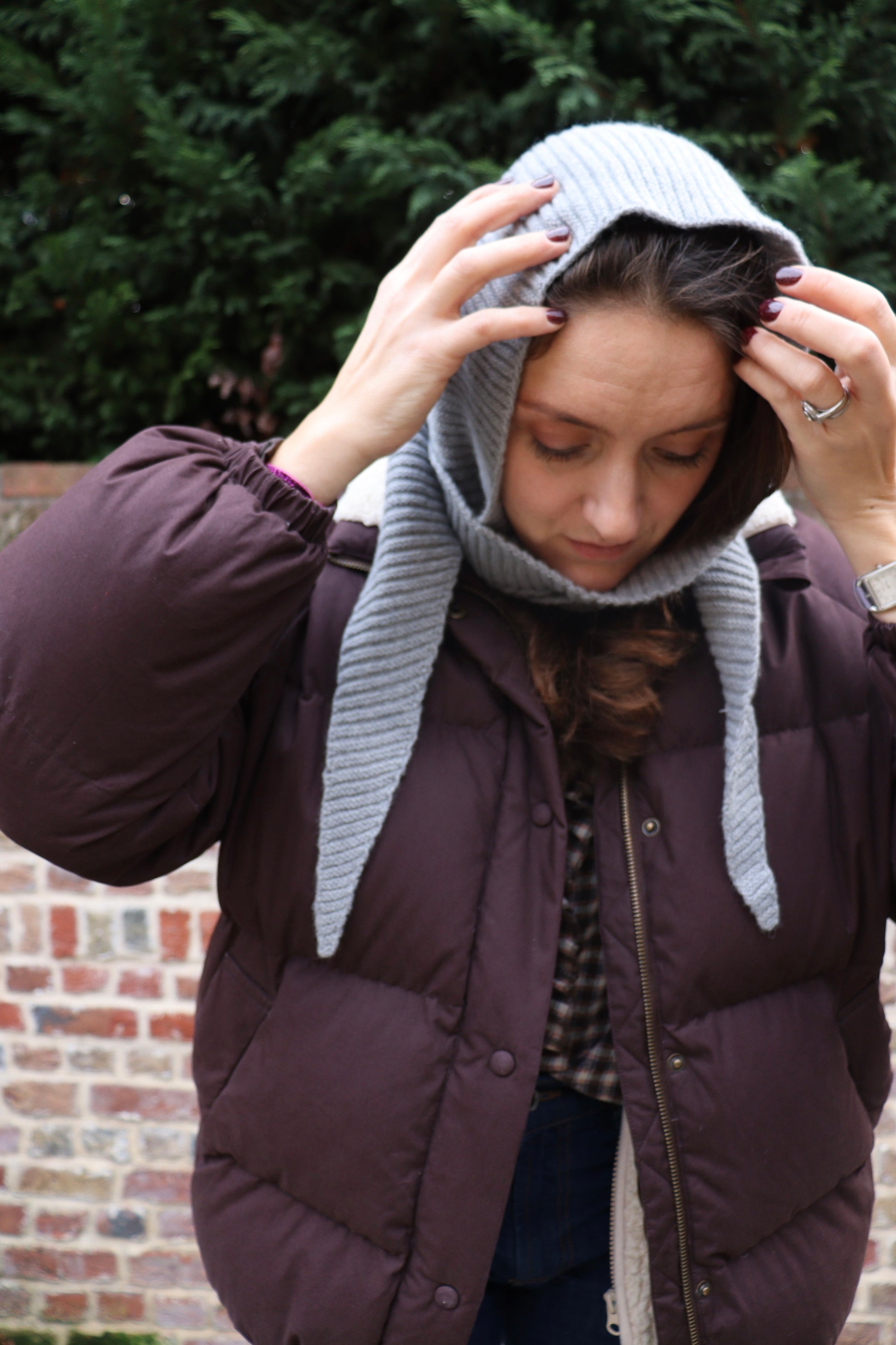 Elle se porte aussi en effet capuche sur un manteau en laine : pas besoin de la garder en permanence, elle s’adapte à chaque moment de la journée.