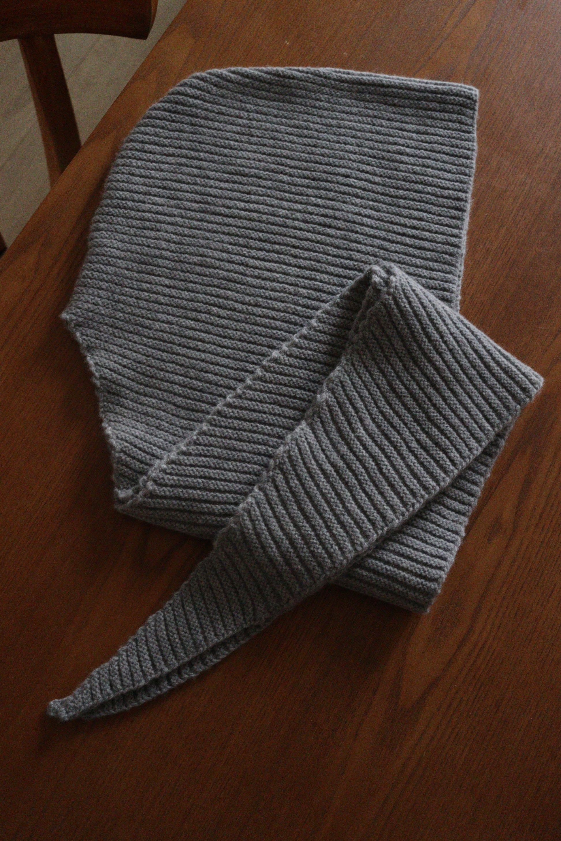 À la fois cagoule et écharpe, elle enveloppe le visage et le cou avec douceur tout en apportant une touche mode très actuelle.