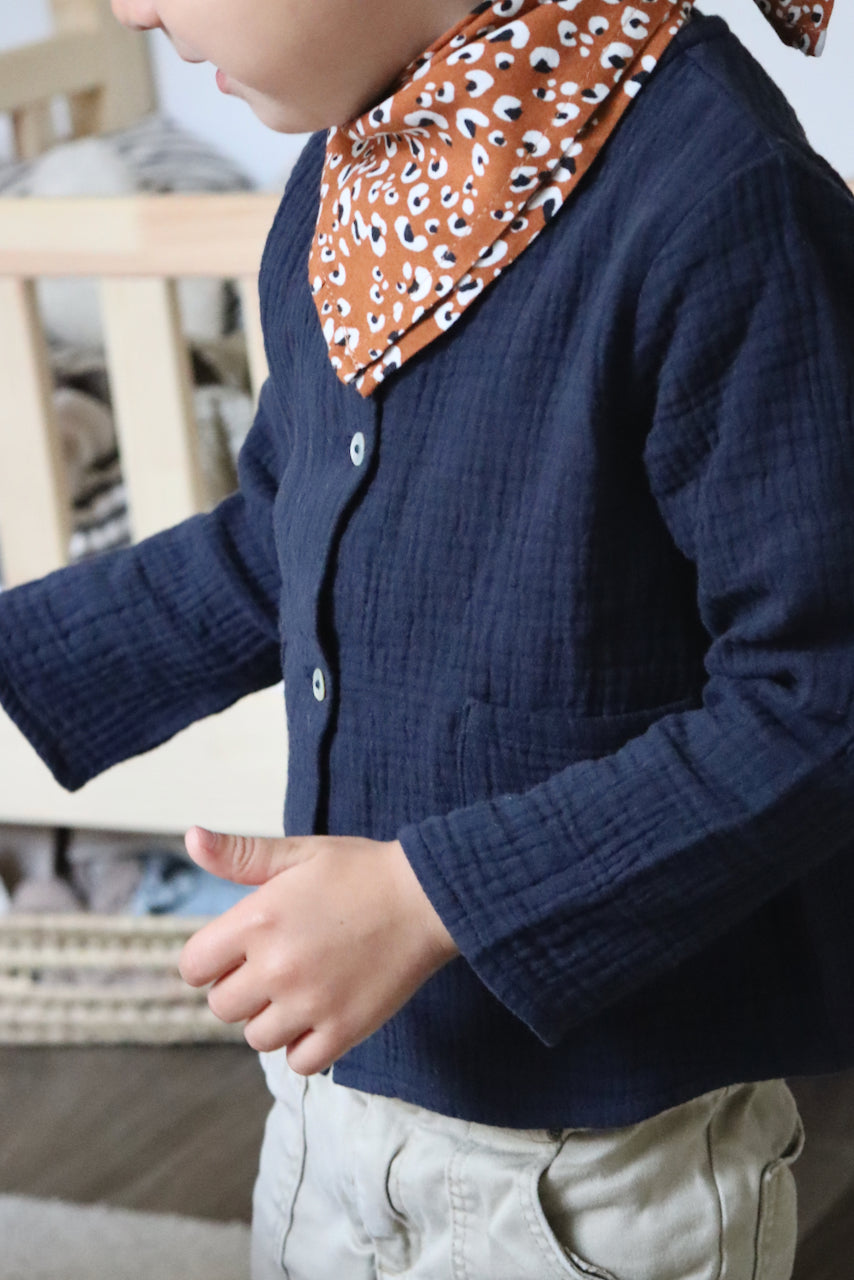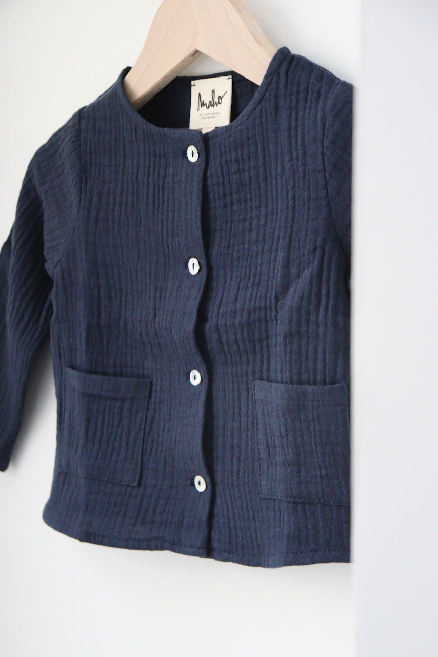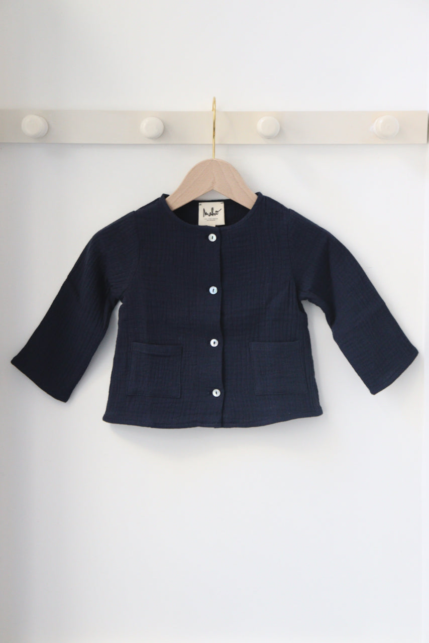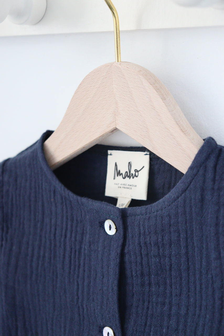 100% gaze de coton Oeko-Tex, boutons en nacre naturelle.
