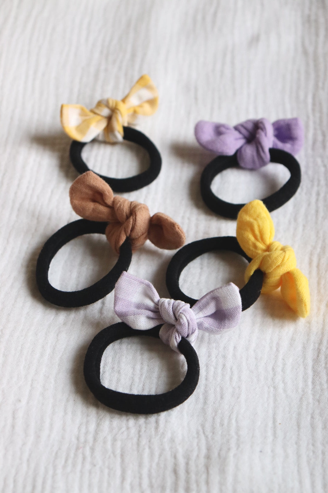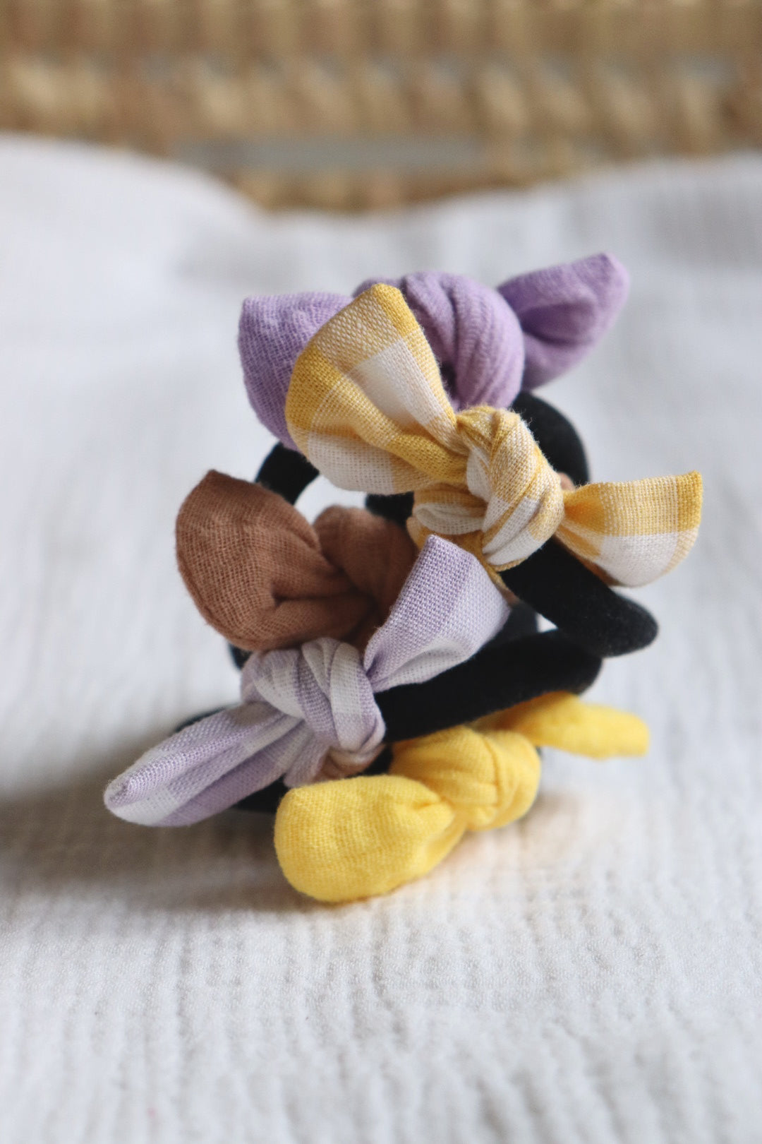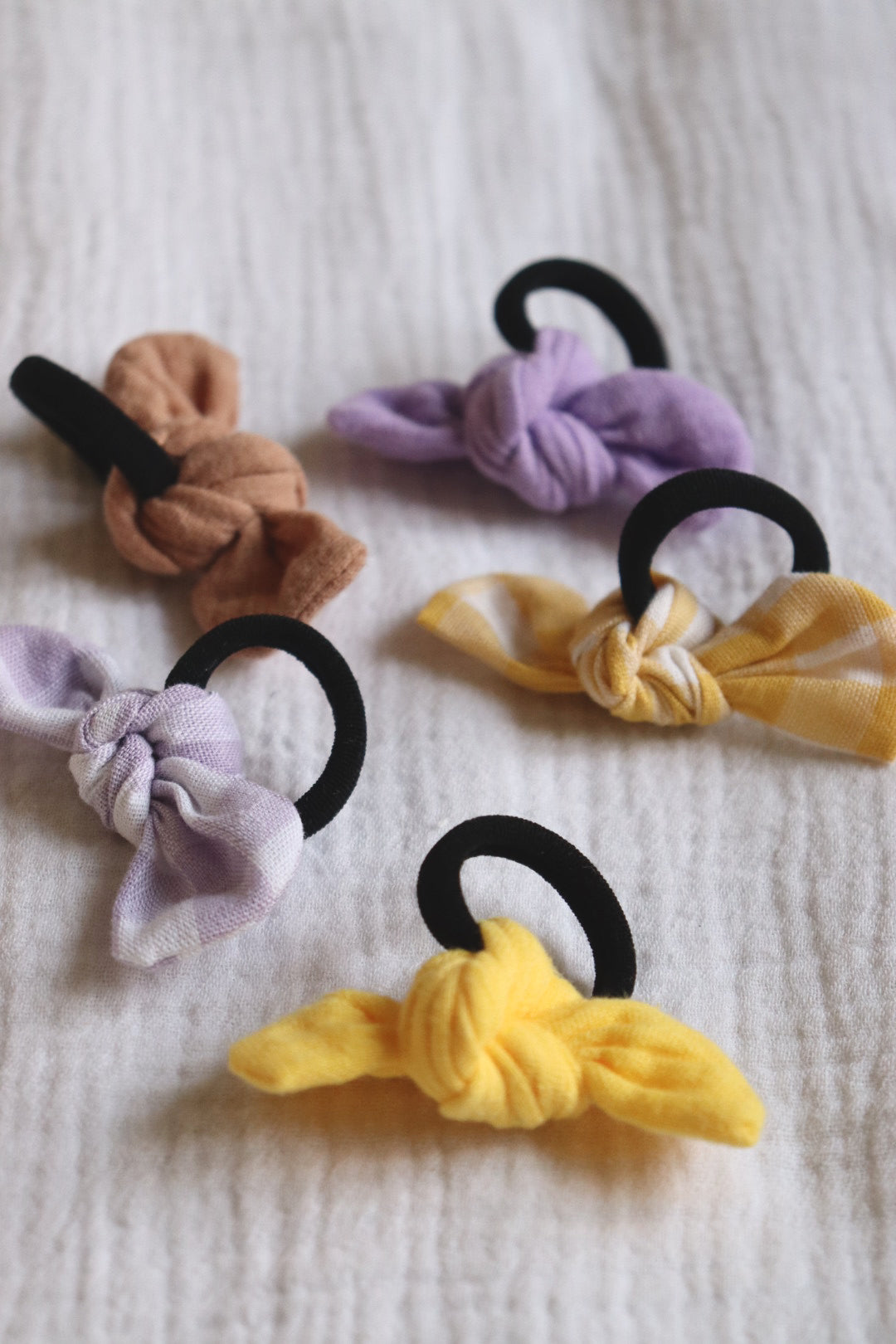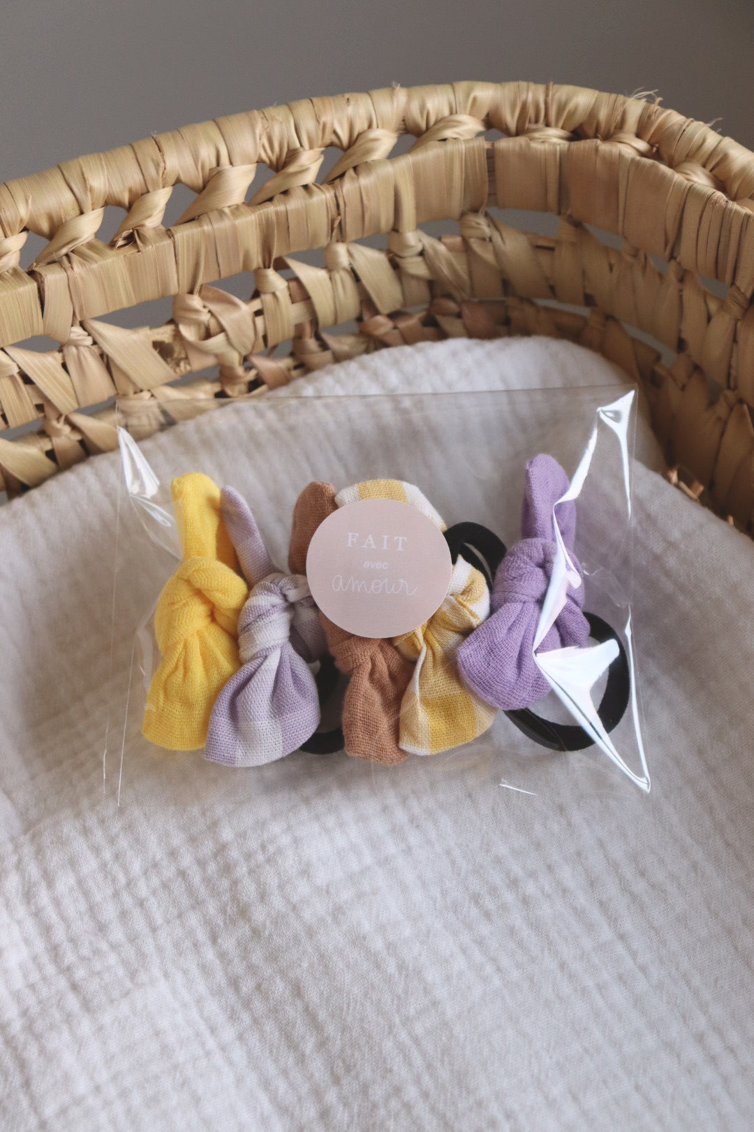 Lot de 5 élastiques Heidi Baby ou Girl : Gaze Fuchsia, Beige, Argile, Ecru et vichy Fuchsia.