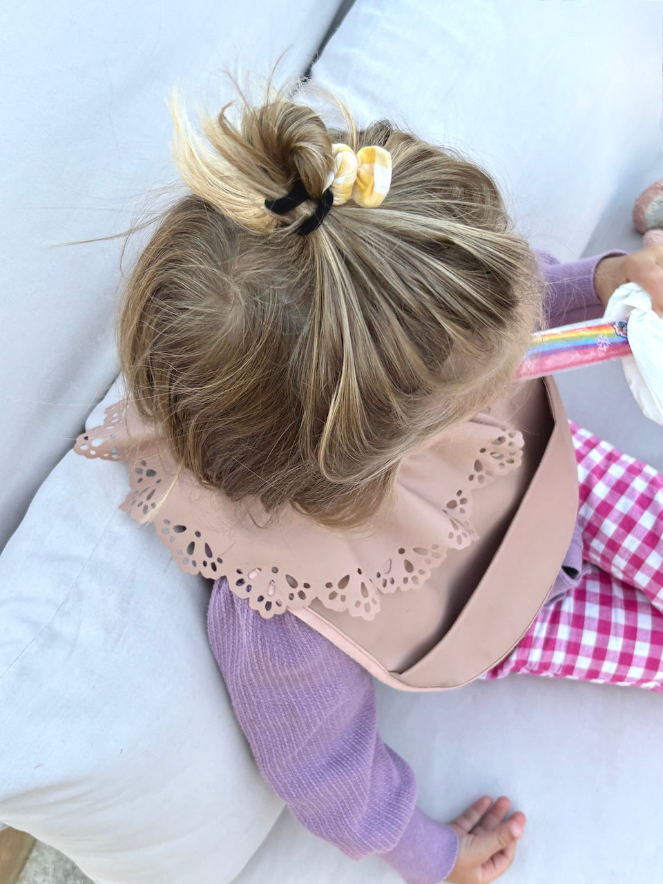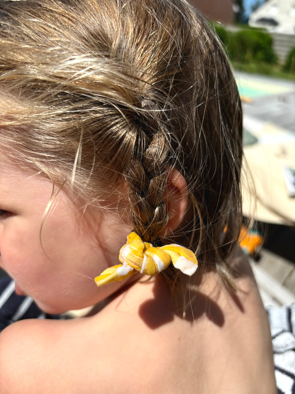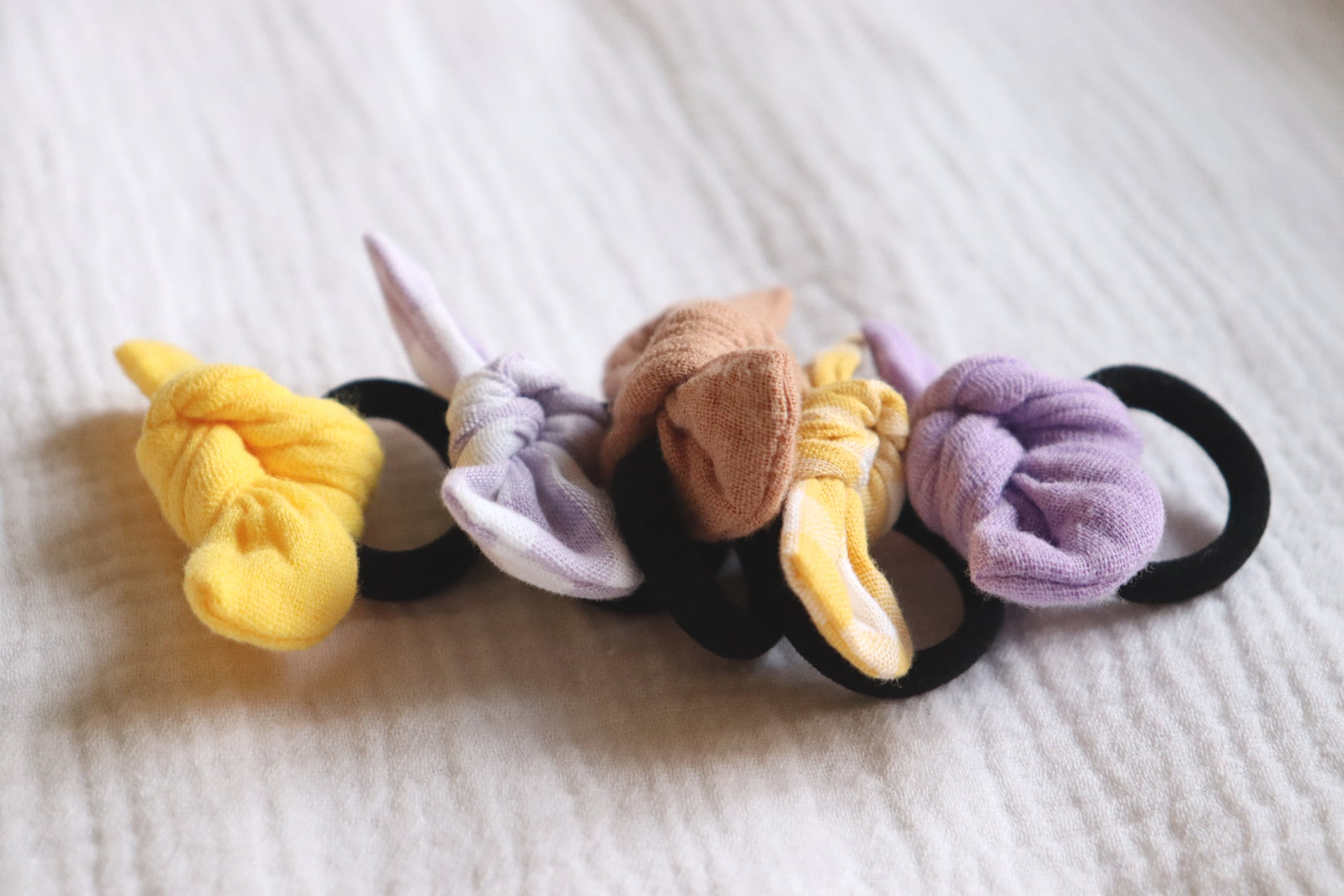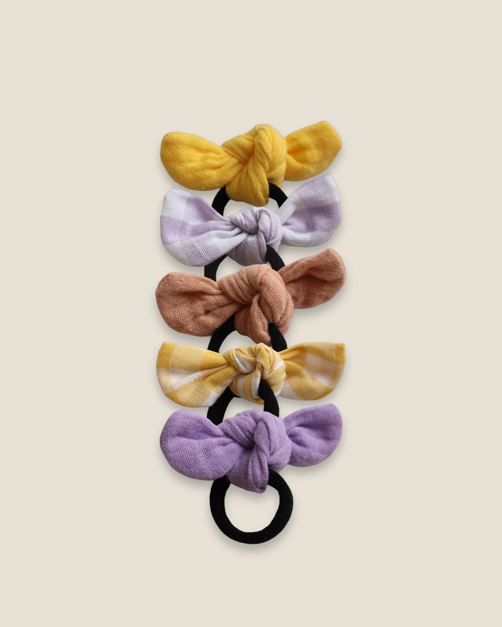 Lot de 5 élastiques Heidi Baby ou Girl : Gaze Fuchsia, Beige, Argile, Ecru et vichy Fuchsia.