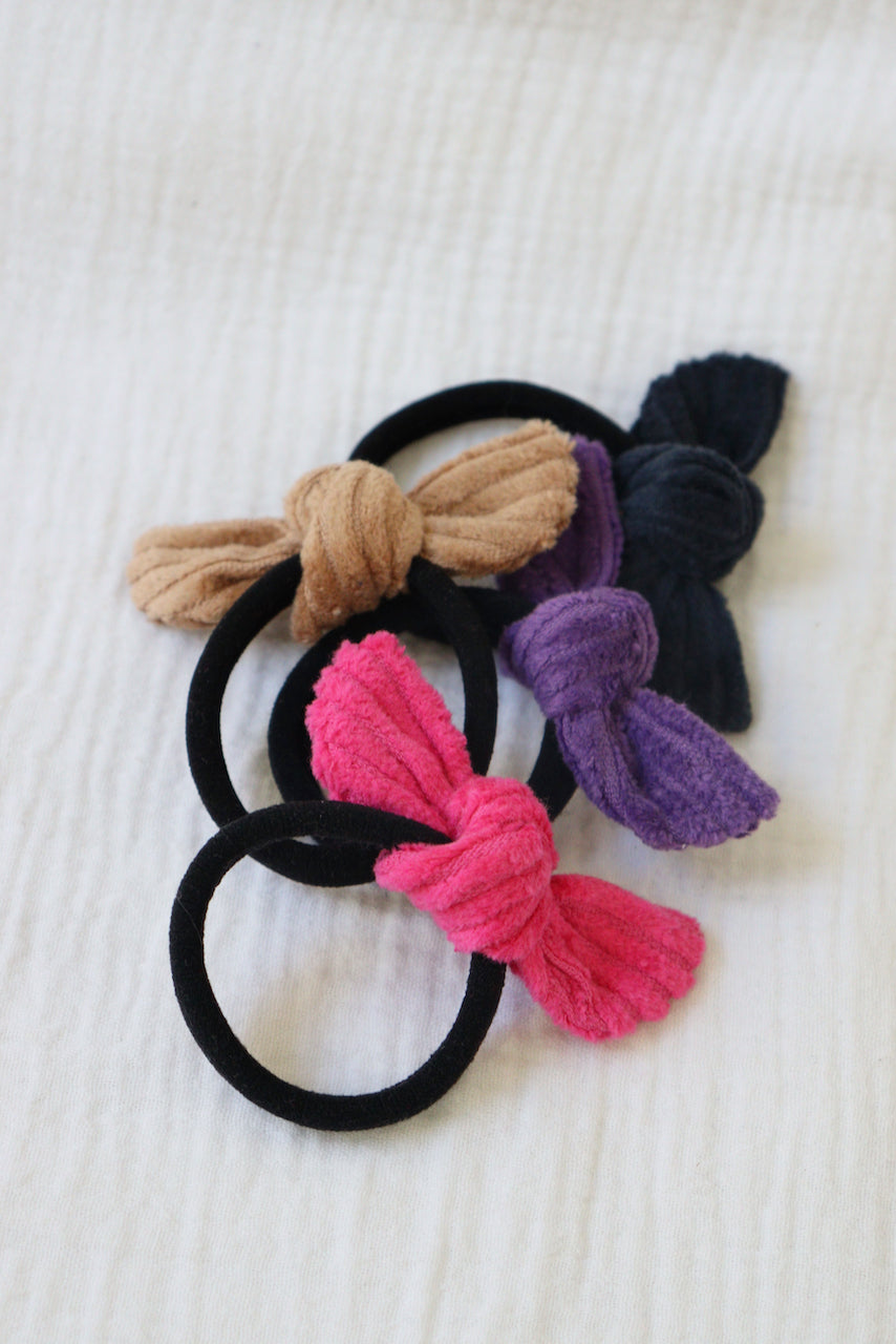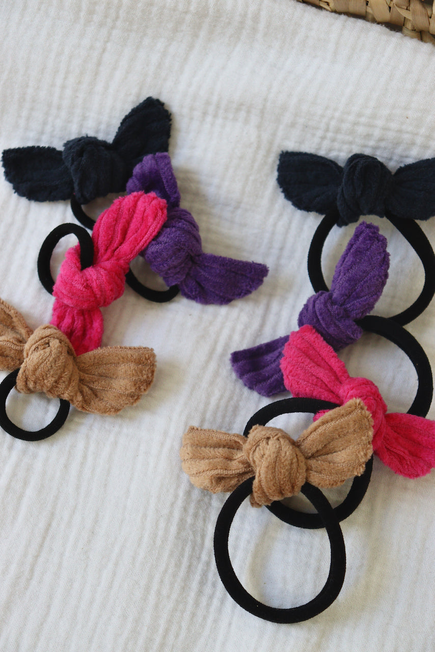 Elastique noir, velours côtelé Fuchsia, Violet, Marine et Camel